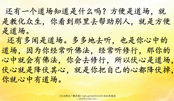 【音 • 图 • 自我测试 】Baihuafofa20161220 处处是道场|白话佛法共修